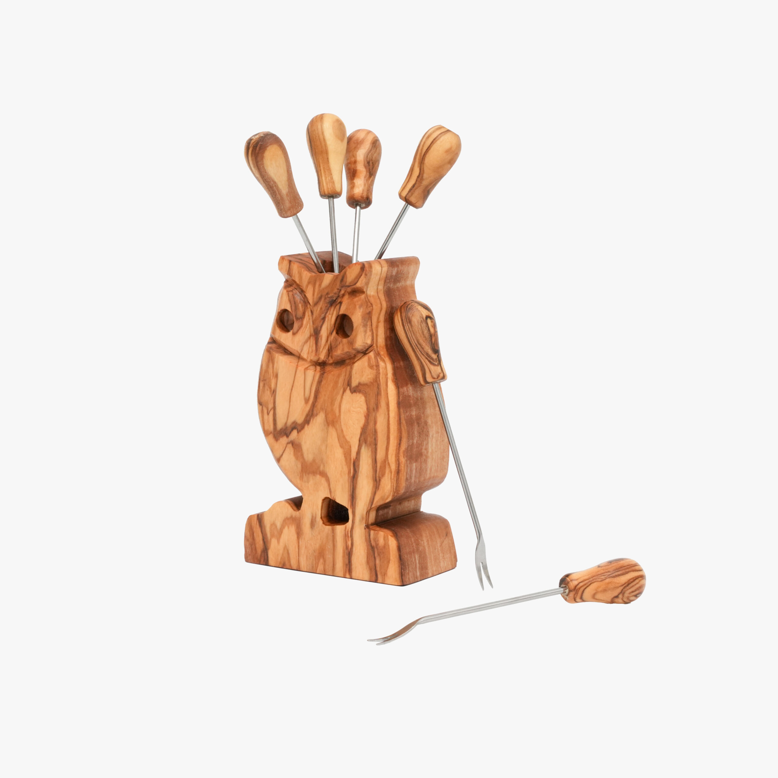 Olive Wood Owl shaped holder with (6) Picks